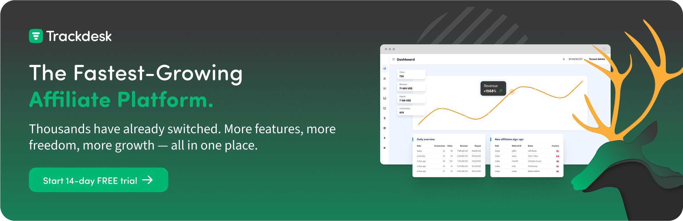 Trackdesk is the affiliate tracking platform built for scalability and growth. It enables companies to launch, manage, and optimize affiliate, referral, and partner programs without limits. Trusted by SaaS, trading, e-commerce companies, agencies, and affiliate networks worldwide, Trackdesk combines reliability, automation, and security to power revenue growth at every stage.