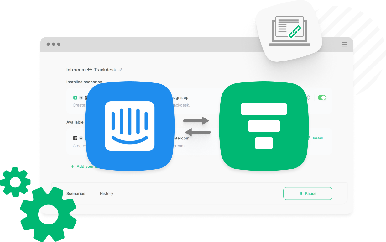 It sends Trackdesk events into your Intercom workspace, where they can trigger automated messages or workflows.
